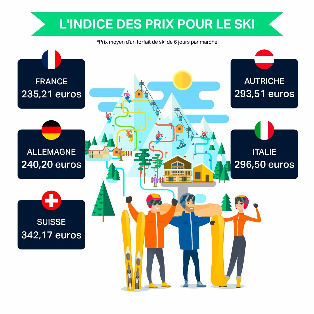 Le prix moyen d’un forfait de ski en France est de 235,21 € pour les adultes et de 188,06 € pour les enfants.