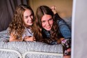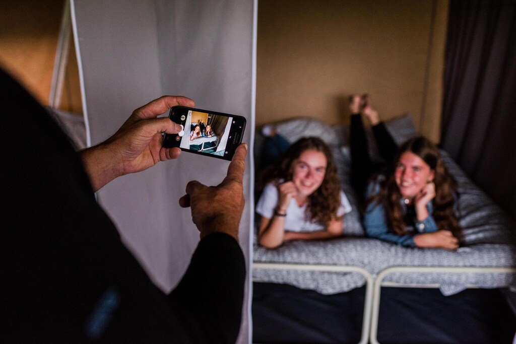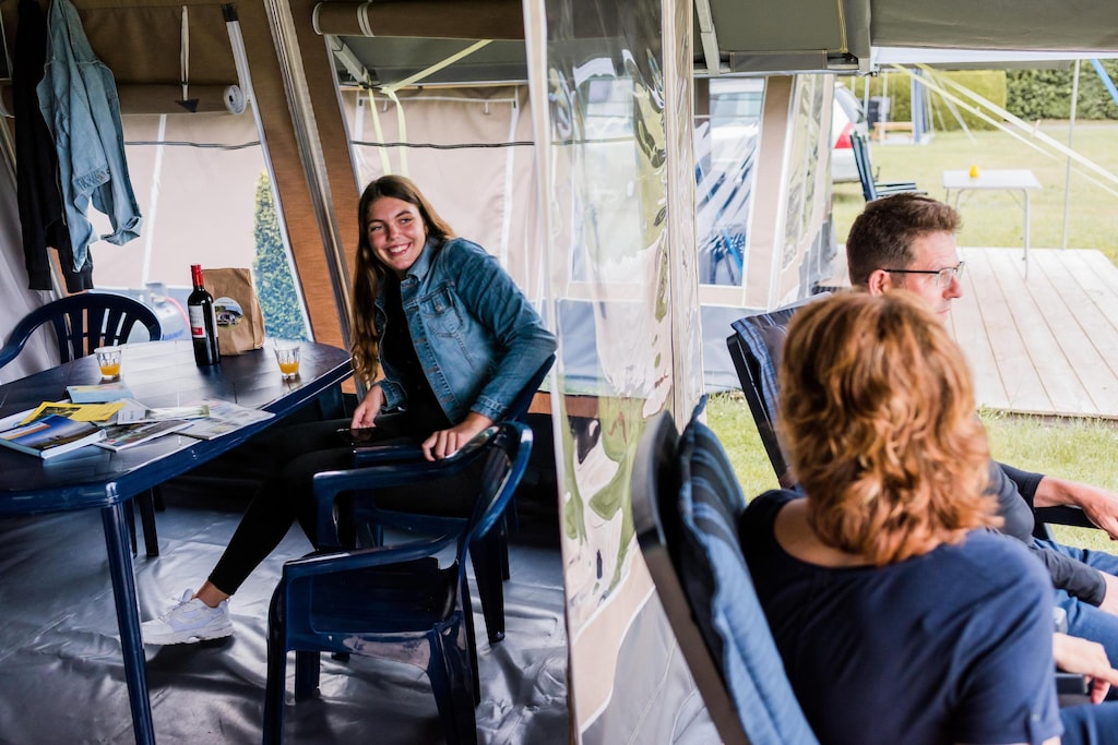 La tente lodge est confortable, cosy et entièrement meublée. Vous ressentirez la vraie sensation du camping, mais avec un peu plus de confort. Vous disposerez d'un salon avec une cuisine ouverte équipée d'un réfrigérateur-congélateur et d'une cuisinière. Il y a trois chambres à coucher, dont deux avec deux lits simples éventuellement assemblés en lit double, et une chambre avec un lit simple. La tente safari ne possède pas de salle de bains propre. Pour la douche et les toilettes, vous utiliserez les sanitaires centraux du camping.