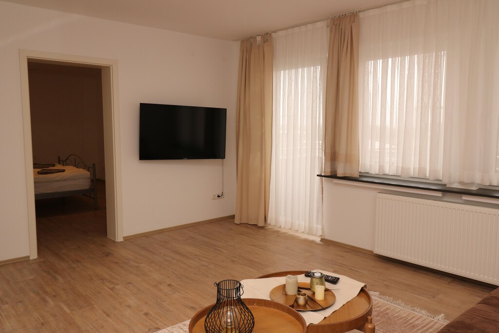 La cuisine moderne est entièrement équipée avec plaques de cuisson, machine à café, four, lave-vaisselle et réfrigérateur, ce qui facilite la préparation de repas maison. Les commerces de proximité sont à seulement 200 m : restaurants, boutiques et centre-ville sont accessibles à pied. Le parc des expositions d'Essen est à seulement 5 km et les attractions à proximité incluent le parc Signal Iduna, la VELTINS-Arena et le ZOOM Erlebniswelt.