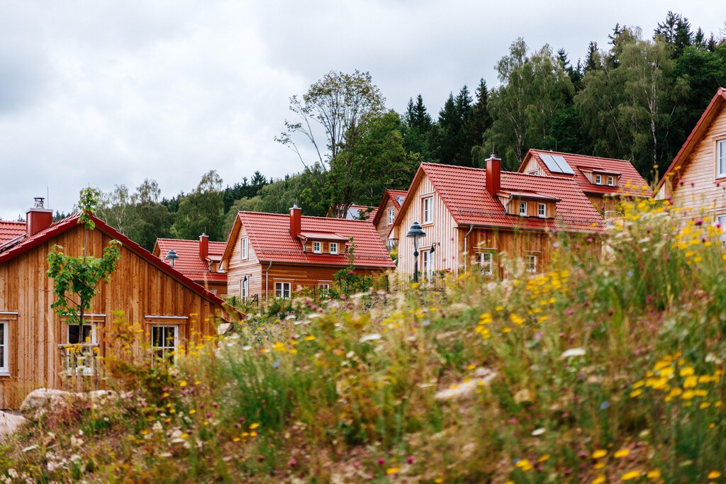 Complexe de vacances nouvellement construit sur le versant sud ensoleillé de Schierke ! Les maisons de vacances luxueuses offrent une détente parfaite après une journée active dans les bois ou sur le Brocken voisin.