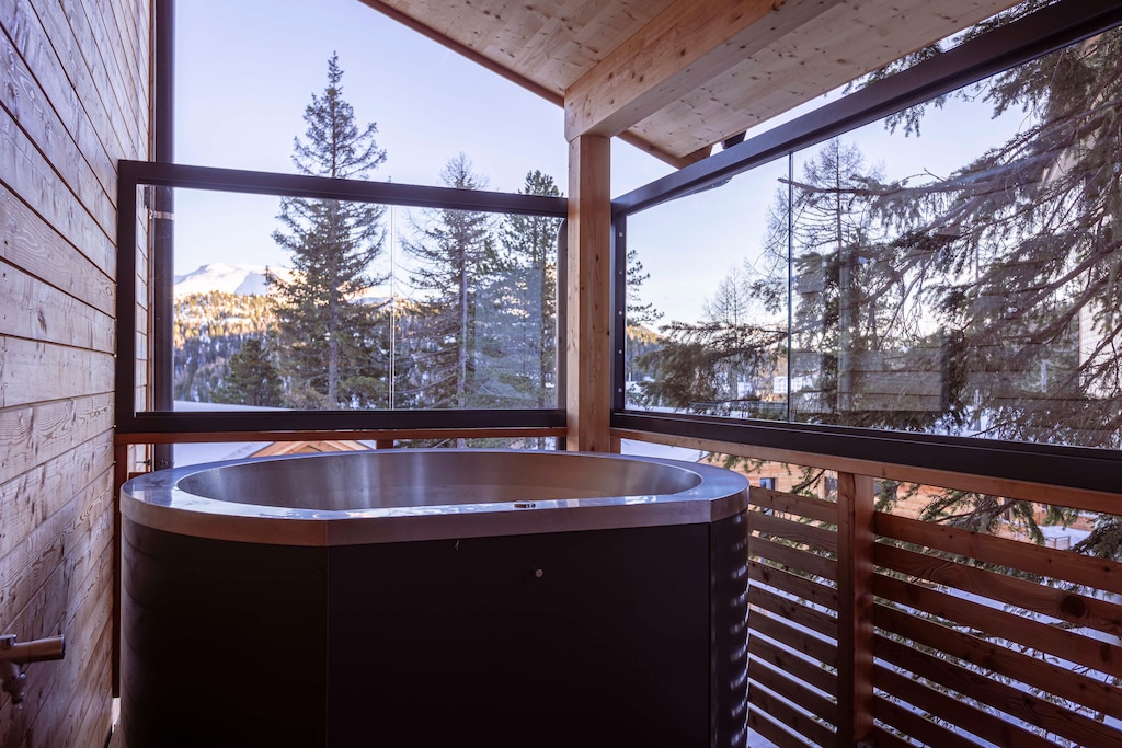 La cuisine ouverte est entièrement équipée avec tout ce dont vous avez besoin, y compris des couverts, des ustensiles de cuisine, une plaque de cuisson en céramique, un four, un micro-ondes, un lave-vaisselle et un réfrigérateur avec compartiment congélateur, ainsi qu'un grille-pain, une bouilloire, une machine à café filtre et une machine à café à capsules Nespresso. Un petit kit de démarrage, comprenant des pastilles pour lave-vaisselle, du liquide vaisselle, une éponge, des sacs poubelles, des produits de nettoyage et un torchon, vous sera fourni à votre arrivée. Les équipements supplémentaires comprennent une connexion Wi-Fi gratuite, une télévision, une carte de majordome (détails disponibles sur place) et un sèche-chaussures de ski.