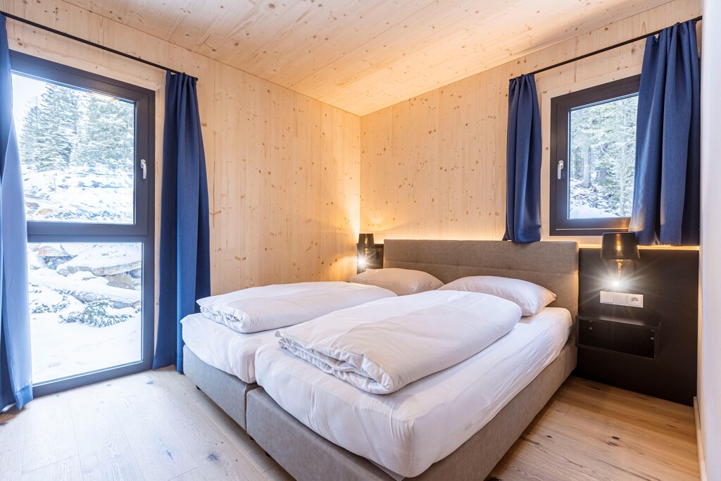 Les chalets naturels modernes, construits en 2023, offrent beaucoup d'espace et de confort pour accueillir jusqu'à 8 personnes. L'espace bien-être dans la grande salle de bain avec bain à remous, un petit sauna (pour 1 à 2 personnes) et une vue magnifique constitue un point fort.