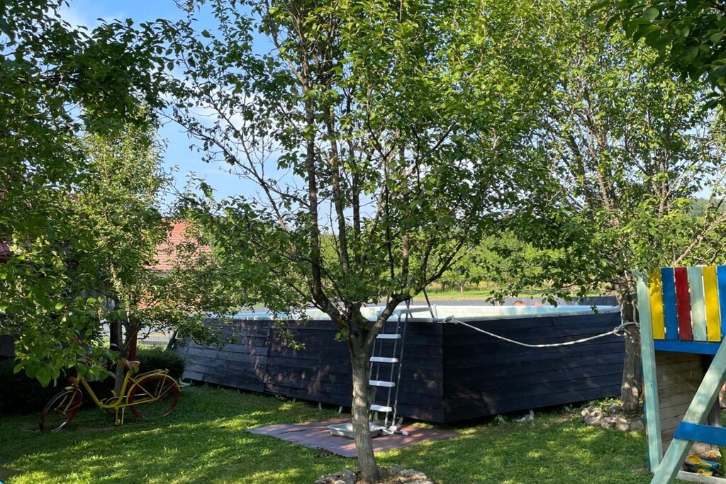 A children's playground is also available. We have included a 7*3.5 meter swimming pool in our offer. It is an Intex pool that we covered with wood.