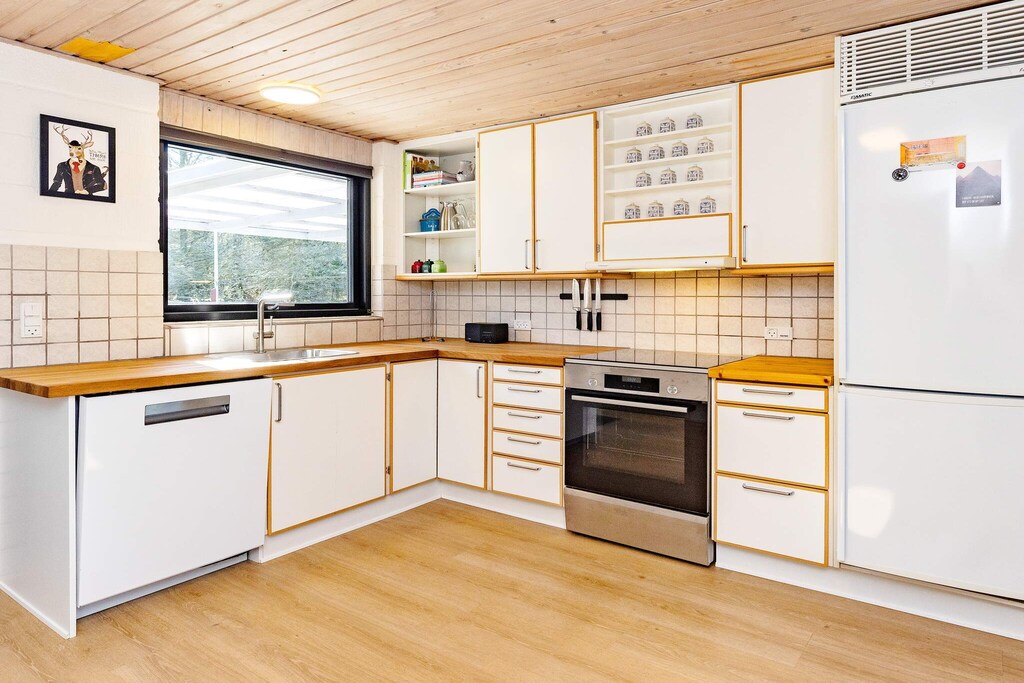 À l'extérieur, la terrasse partiellement couverte est idéale pour profiter des sons de la nature et du chant des oiseaux, tout en vous relaxant ou en dînant en plein air. Le jardin comprend une balançoire et une pelouse bien entretenue pour jouer dehors. La propriété est proche du Limfjord, idéal pour le paddle, le canoë et le kayak.