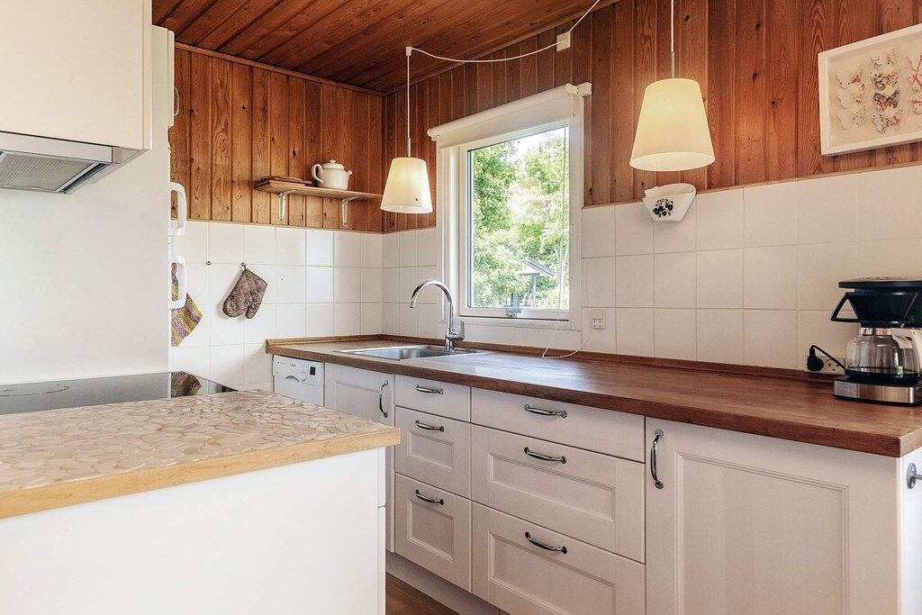 Der er en dejlig udsigt og området er spændende at gå tur i, Huset er fint indrettet med enkeltsenge i et værelse og køjesenge i det andet, / Hyggeligt køkken i forbindelse med stue og udsigt over fjorden, I det hele taget en skøn beliggenhed