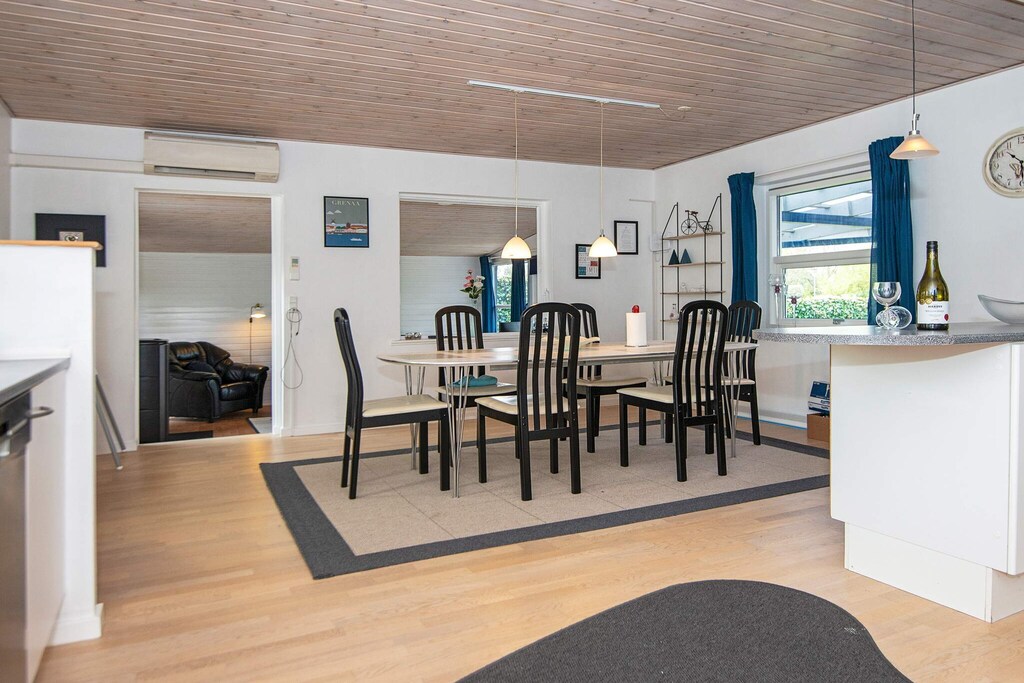 À Grenå, vous trouverez ce chalet rénové avec une structure tout à fait unique. La maison est meublée avec une cuisine bien équipée et une salle à manger ouverte. A côté se trouve un salon. La maison a 2 salles de bain et 2 bonnes chambres dans la maison principale et 1 dans l'annexe. La maison a une terrasse couverte et à l'arrière de la maison il y a un petit environnement commun clos, où il est possible de profiter du beau temps sur la terrasse passionnante ou de s'asseoir près du feu. Pas à louer à des groupes de jeunes.