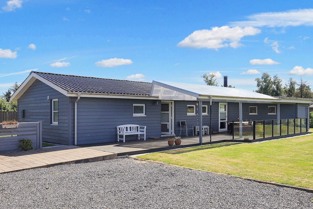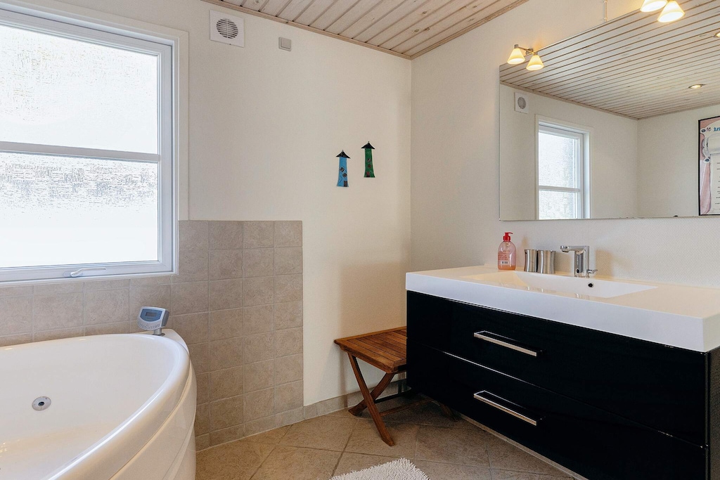 Cottage spacieux avec bain à remous situé sur un terrain gazonné bien entretenu à Hou. Ici, il y a une grande terrasse en bois et un pavillon, qui fait office de terrasse couverte. Le gîte dispose à la fois d'une grande salle de bain avec bain à remous et d'un WC supplémentaire, tous deux avec chauffage au sol. Il y a à la fois un poêle à bois et une pompe à chaleur, donc beaucoup d'options pour chauffer les soirées un peu plus fraîches.