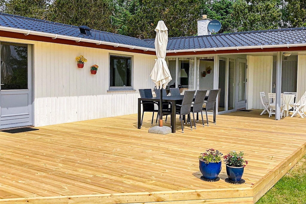 Maison de vacances avec belle grande terrasse ensoleillée et un très bel emplacement sur un grand terrain naturel ensoleillé d'env. 1000 m de la plage. La maison est très lumineuse et bien meublée avec trois bonnes chambres avec placard. Une salle de bain est bien grande et spacieuse, en plus il y a des toilettes invités juste à côté du petit coin couchage. Une cuisine bien équipée en communication ouverte sur le salon donnant sur de grands champs, où les cerfs et les lapins sautent dans les champs. Il y a une terrasse autour de la maison avec du soleil et des espaces ouverts, où vous pourrez dîner pendant que le soleil se couche sur Læsø. Dans le jardin il y a une belle petite annexe isolée toute l'année avec canapé-lit pour 2 personnes. Dans le jardin se trouve également un petit étang de jardin avec des poissons rouges juste à côté de la terrasse et de l'annexe. Pas à louer à des groupes de jeunes. Pas à louer à des groupes de jeunes.