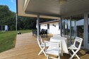 Der var masser af plads inde, et stort veludstyret køkken, spiseplads og hvileplads, også et fint badeværelse, / En fantastisk stor træterrasse på 3 sider af huset med spiseplads og hvileplads,