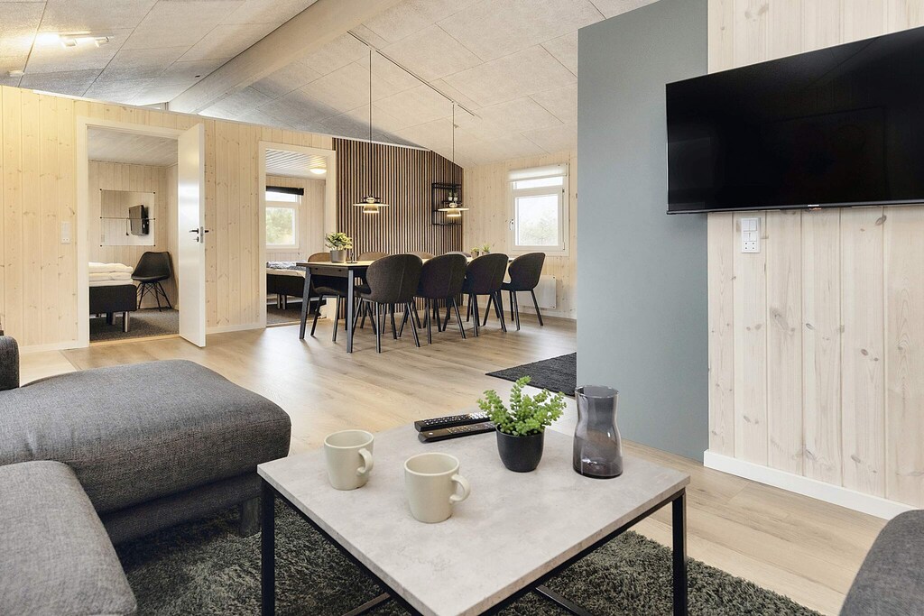 Ce cottage bien situé avec piscine intérieure et sauna ainsi qu'un bain sauvage extérieur est situé sur un grand terrain naturel près de Løkken. Le gîte a été rénové en 2020. Autour du gîte il y a une terrasse nouvellement construite de 110 m2. Voici de nombreuses possibilités de détente, de soleil et d'ombre. Pour les actifs, il y a un filet de ping-pong et une raquette, qui peuvent être installés par ex. la table de jardin. Il y a une balançoire et une maison de jeu dans le jardin pour les plus jeunes. Il y a aussi une cheminée pour une soirée agréable. Le gîte est équipé d'une cuisine ouverte, d'un salon et d'un coin repas. Le gîte est équipé de TV, radio et internet. Dans le salon il y a aussi un poêle à bois. Il y a 10 lits dont un en mezzanine. De là, il y a des vues sur la mer. La maison offre de nombreuses possibilités pour plusieurs familles de passer des vacances ensemble. Il y a de belles vues sur les dunes et seulement env. A 500 m de l'une des plus belles plages de sable du Danemark. De plus, il n'est pas loin du centre de Løkken. Pas à louer à des groupes d'artisans.