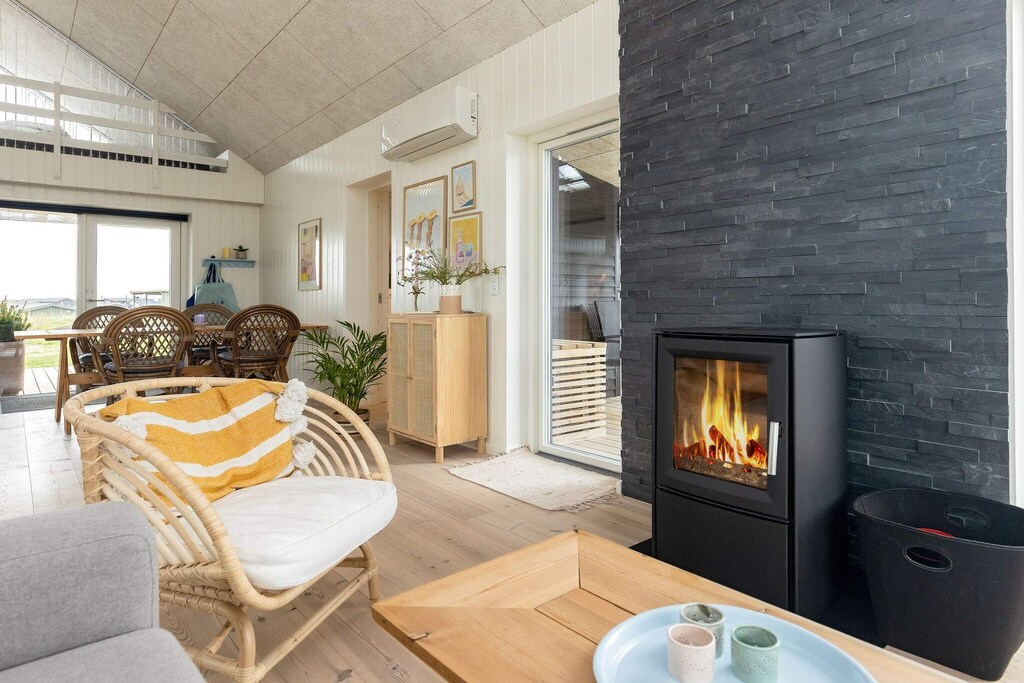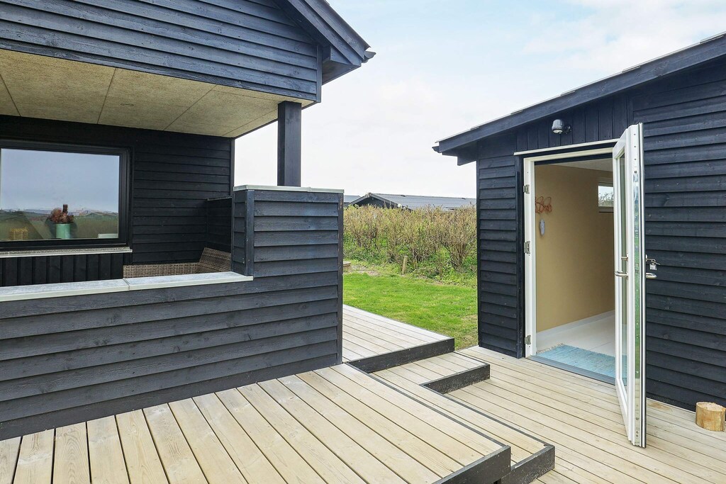 À Løkken, vous trouverez ce cottage de style nordique avec vue sur la mer. Ici, vous avez vraiment la possibilité de passer des vacances absolument fantastiques et détendues, quelle que soit la saison. Le gîte est moderne et spacieux, donc si vous êtes un couple d'amis, une petite famille et que vous souhaitez avoir un couple de grands-parents en vacances, il y a de bonnes opportunités pour cela, car la maison dispose d'une belle annexe chauffée. Il y a un grand espace de vie ouvert avec de grandes fenêtres, ce qui assure un ensoleillement optimal tout au long de la journée. Cuisine bien équipée, coin repas, ensemble canapé et poêle à bois et en plus une grande chambre, mezzanine avec pièce pour deux et annexe. La salle de bain de la maison est équipée d'une douche, du chauffage au sol et d'un lave-linge. Il y a un abri d'auto juste à côté de la maison, où les voitures peuvent être à l'abri et les bagages peuvent être facilement soulevés dans la maison. Pas à louer à des groupes de jeunes.