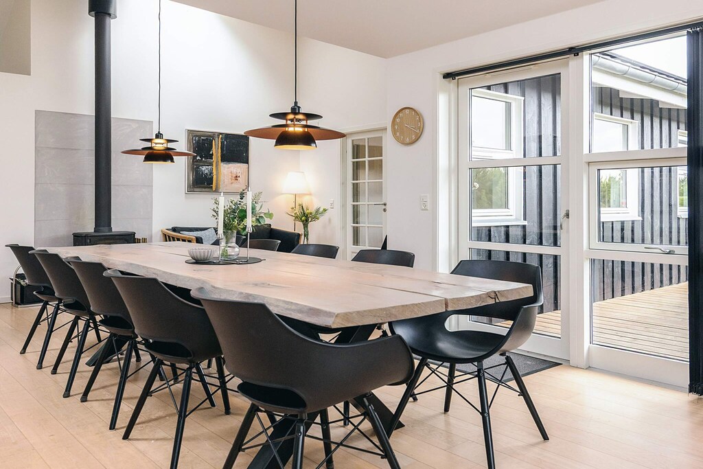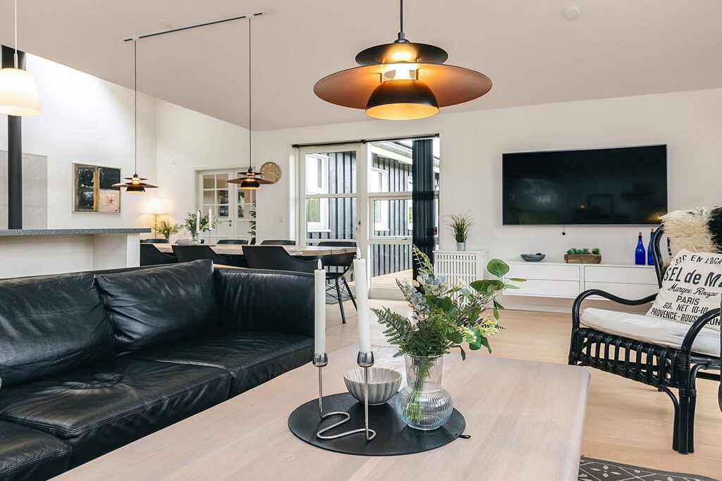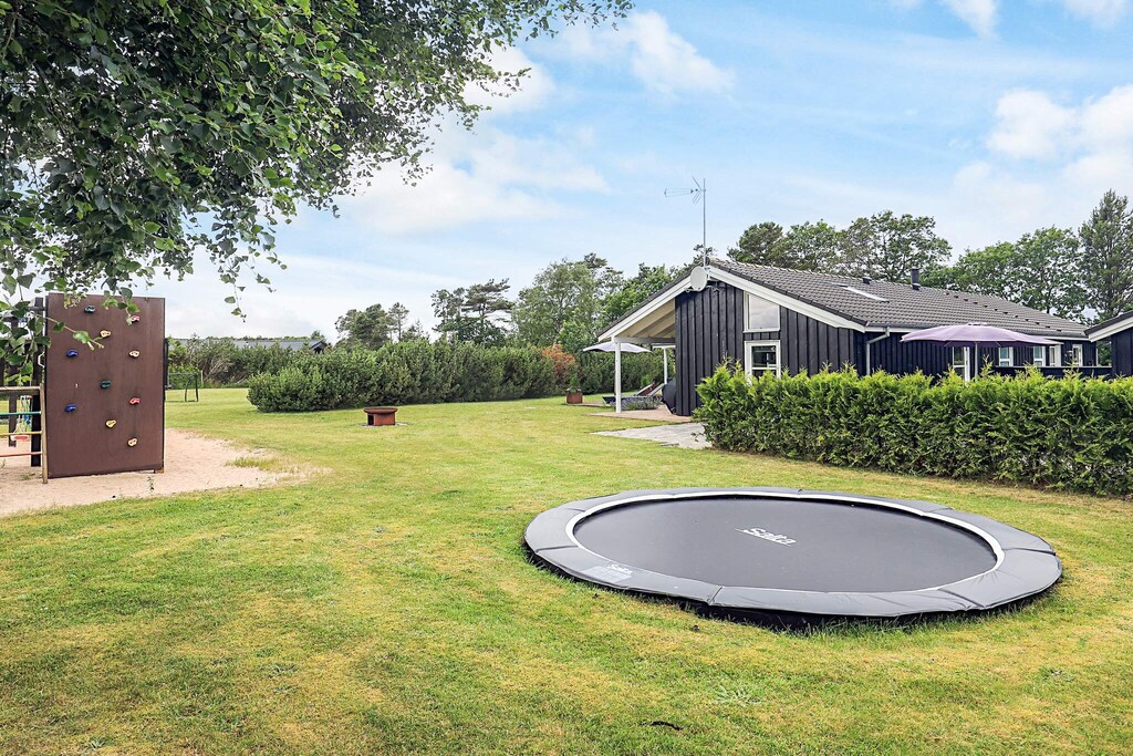 Maison de vacances avec bain à remous et diverses activités située à quelques minutes à pied de la mer à Øster Hurup. Il y a un salon lumineux et spacieux en connexion ouverte avec la cuisine et la salle à manger. De là, il y a un accès à une grande terrasse partiellement couverte avec de nombreux recoins confortables et un grand jardin. Il y a trois bonnes chambres avec lit double et une mezzanine avec quatre matelas et deux salles de bains, dont une avec bain à remous et sauna. Salle d'activités avec billard, ping-pong, baby-foot et fléchettes. Grand jardin avec trampoline, tour de jeu, but de football et beaucoup d'espace pour jouer au ballon et jouer. Pas à louer à des groupes de jeunes.