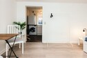 L'appartement comprend une mini-cuisine avec une cuisinière électrique et un réfrigérateur-congélateur, ainsi qu'une salle de bains avec un lave-linge, un lavabo et une douche. Le chauffage urbain assure un séjour confortable. Vous pourrez également profiter de la cour extérieure, parfaite pour vous détendre et vous imprégner de l'atmosphère paisible.