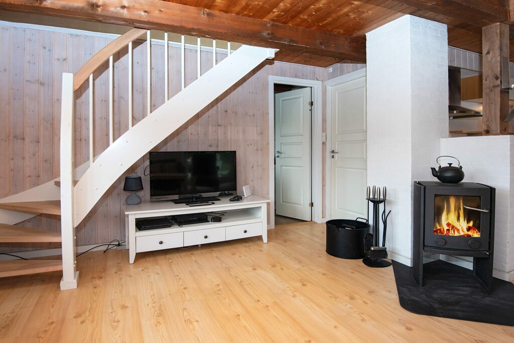 Die Lage, das Haus, der Kaminofen und das Doppelbett,