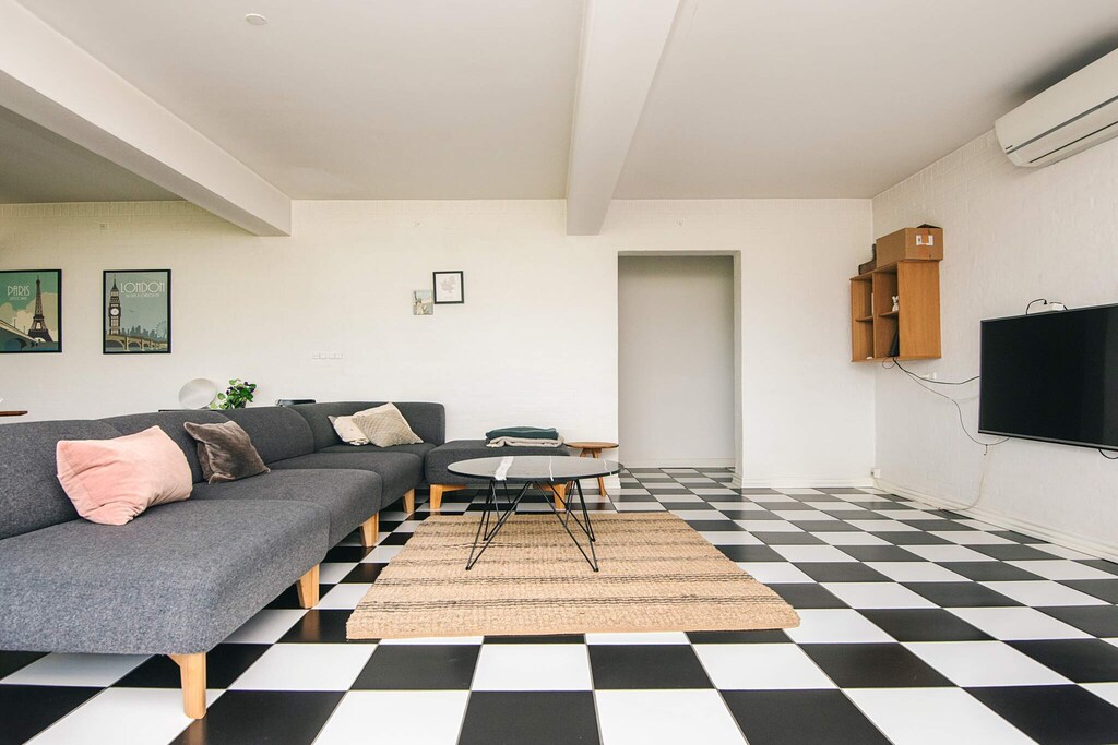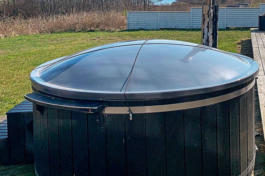 Store fælles opholdsrum med siddeplads til alle, og så køkkenet tæt på, / Det udendørs spa,