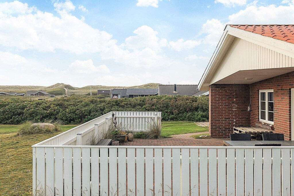 Cottage lumineux avec un excellent emplacement à seulement env. 150 m de la mer du Nord rugissante. Il y a une vue magnifique sur les dunes et la région. La maison est meublée avec cuisine et salon combinés avec plaque vitrocéramique, four de table et réfrigérateur avec congélateur. Dans le salon se trouve un bon mobilier et une télévision avec chaînes internationales, une antenne parabolique et une chaîne stéréo avec lecteur CD. Il y a un poêle à bois pour créer du confort et de la chaleur lors d'une fraîche soirée d'été ou d'une soirée d'automne avec de la pluie et des débris. Salle de bain et trois chambres. Il y a deux terrasses avec salon de jardin dont une partiellement couverte. Vous pourrez y dîner pendant que le soleil se couche sur la mer du Nord. Une terrasse peut être complètement fermée avec une clôture. En été, il y a une épicerie et une cafétéria à moins de 150 mètres, et dans la ville voisine de Harboøre, il y a de bonnes possibilités de shopping toute l'année.