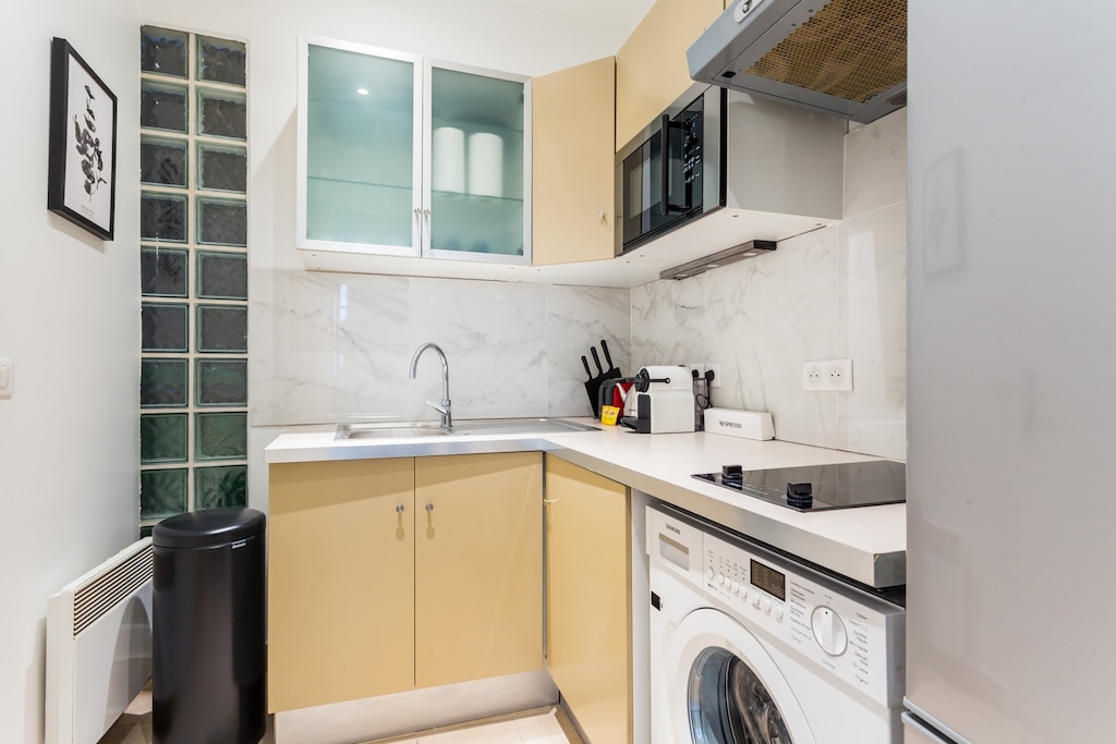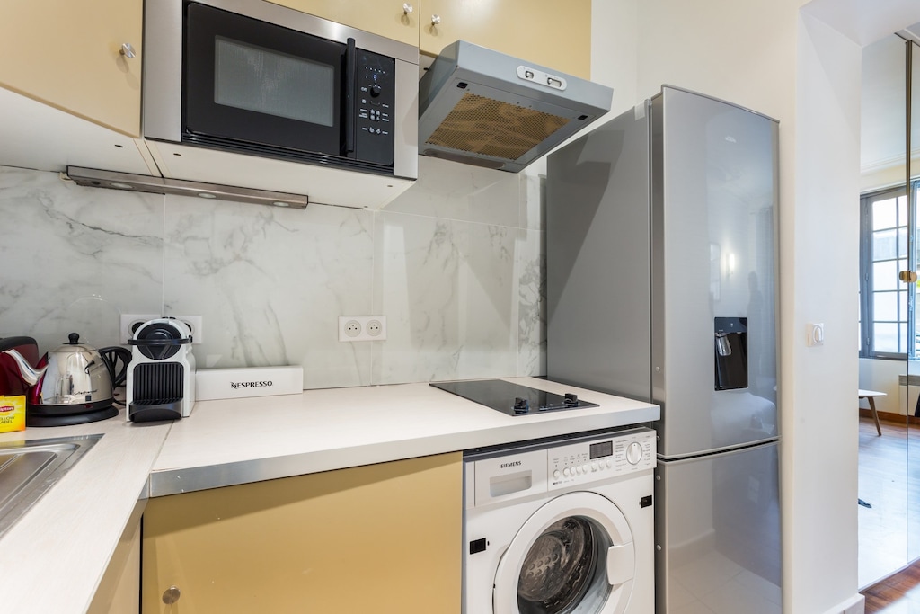 Minimalist kitchen equipment, a little more equipment would be welcome, no TV, the window should be changed for external acoustic, The location of the apartment is TOP 10 minutes walk from the Arc de Triomphe, We had a great stay