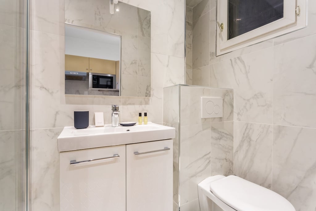 Fantastic place to stay, Plenty of dining options in the vicinity, Easily accessible to the Arc de Triomphe, There were 4 of us in total staying here and while it was a bit cozy, since we only used it for sleeping, it was manageable, The Eiffel Tower was approximately a 40-minute walk away but the view was stunning, In general, we adored this place considering the cost,