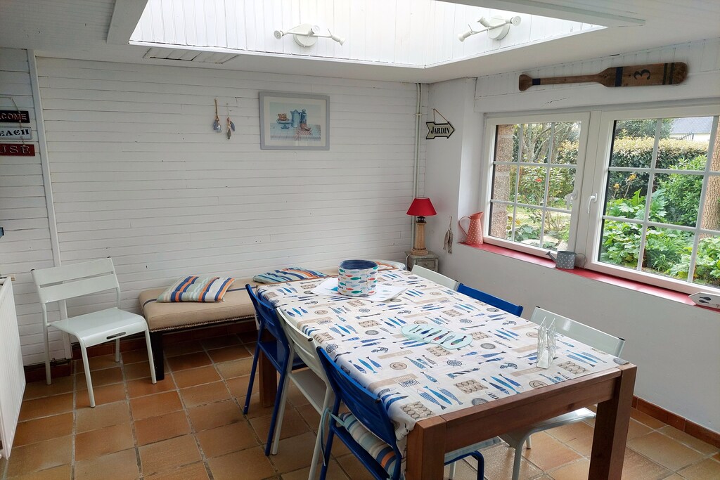 Huset är ganska rymligt, perfekt för familjer eller grupper, Vi gillade att laga mat i det välutrustade köket och äta i den härliga trädgården, Tillgängliga stigar till stranden gjorde det lätt för barnen att leka vid havet