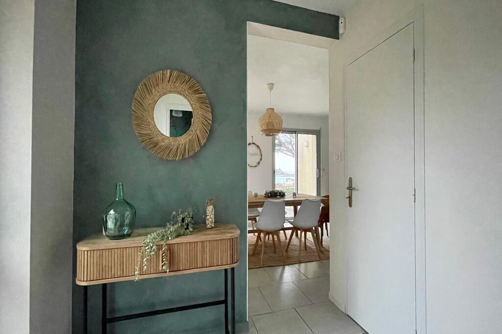 Cette superbe maison de vacances offre un emplacement de premier choix et une vue fantastique sur la mer. La propriété de 1 200 m² se situe sur les hauteurs, au-dessus du port de Terenez. Le petit port, très animé en été, est accessible par un petit chemin piétonnier ; vous y trouverez non seulement la première petite crique pour vous baigner (400m), mais aussi une excellente crêperie où vous devriez absolument goûter aux différents plats de crêpes et de galettes. La maison offre un excellent confort de vie en toute saison avec son grand salon, son joli coin cheminé, sa cuisine bien équipée, ses 3 chambres et ses 2 salles de bain. Sur la mezzanine vous trouverez un petit coin de couchage supplémentaire. Le garage est accessible pour y garer votre voiture ou pour ranger vos vélos.