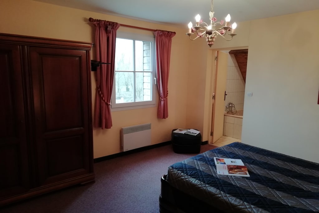 The Ferme is a beautiful site, a really peaceful place to stay. Gite no. 6 was very comfortable and well appointed. A real 'Home from home'(two ensuite bedrooms, dishwasher, microwave, coffee maker etc.) We loved the outside covered eating area - up on stilts (the apt. is on the first floor level) overlooking the duck pond. The pool was a bit cold so only the children ventured in, and then only twice for a short periods. We enjoyed the very nice tennis court, although competition for it's use was hot especially in the evenings. Our overall impression was good, this is a really pretty place and we had a good time.