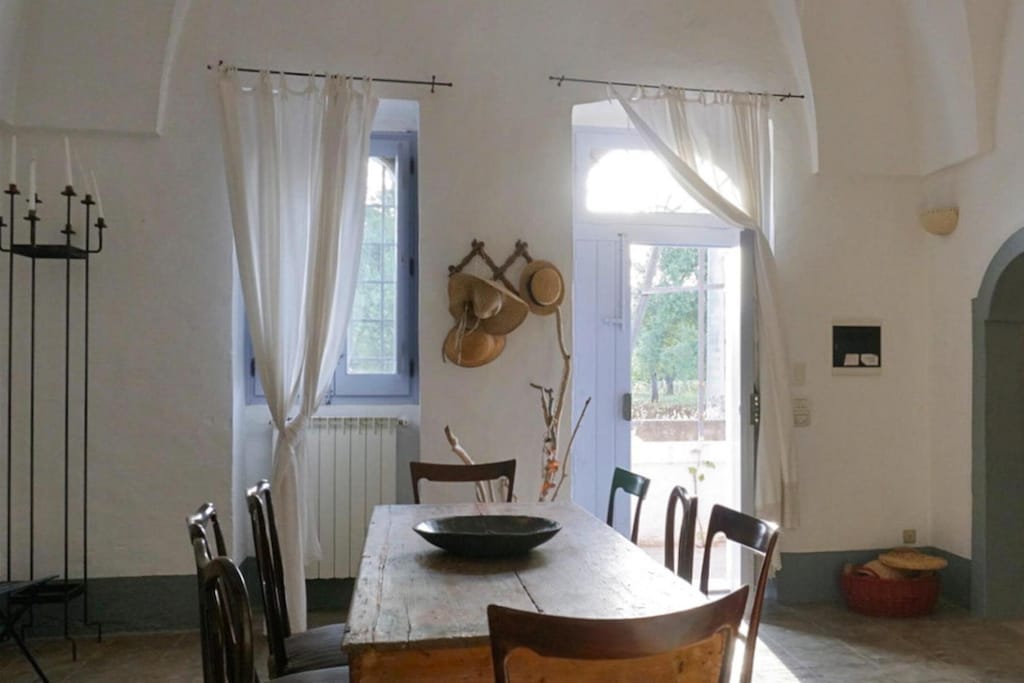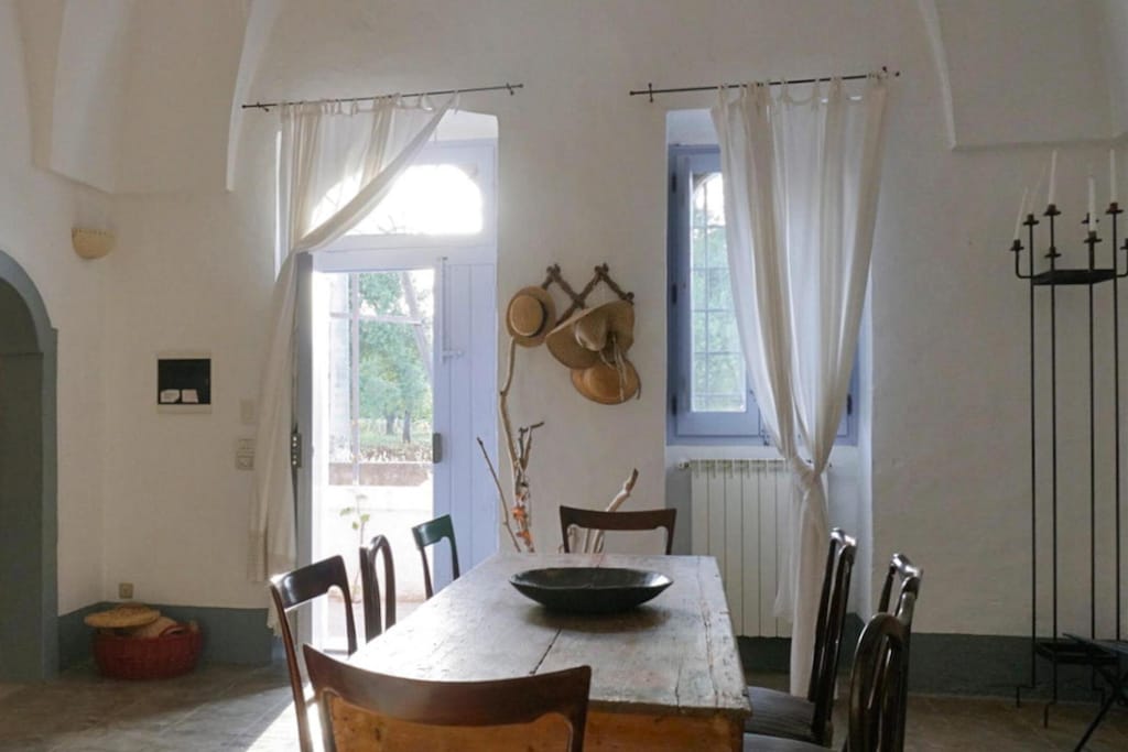 Profitez de vacances reposantes dans une Masseria authentique et restaurée avec amour. Cette charmante maison de campagne vous attend à la périphérie d'Ostuni et est entourée d'un magnifique jardin. Avec la petite cuisine, vous pouvez prendre soin de vous sans soucis. Les quatre chambres séparées offrent suffisamment d'opportunités pour se retirer après des journées mouvementées. Le point culminant de la maison de vacances rustique, meublée dans le style typique du pays, est l'emplacement idyllique et imbattable, la proximité de la ville d'Ostuni et des longues plages de sable autour de Rosa Marina. La région autour d'Ostuni, célèbre pour son paysage unique avec ses trulli et ses vastes oliveraies, est l'une des plus belles régions d'Italie. La vieille ville d'Ostuni avec ses rues étroites et sinueuses et ses maisons blanchies à la chaux offre une variété de boutiques, de cafés et de trattorias qui préparent des plats traditionnels des Pouilles dans une atmosphère romantique. Activités à proximité : Depuis votre maison de vacances, vous pourrez faire des excursions dans les charmantes villes voisines des Pouilles, Cisternino, Alberobello et Martina Franca. Nous vous recommandons également des excursions dans les nombreux vignobles de la région ou des randonnées à vélo à travers le magnifique paysage vallonné. Vous pouvez également rejoindre en très peu de temps les longues plages de sable de Rosa Marina, où vous pourrez passer de merveilleuses journées à vous baigner. La réserve naturelle de Torre Guaceto est également appréciée pour les longues journées de plage qui, en plus des plages de sable fin, abrite un paysage marin et côtier protégé avec une grande variété d'espèces.Mobilité : Ne convient pas aux personnes à mobilité réduite