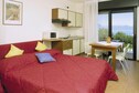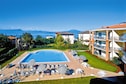 34 logements, réception, ascenseur, bar, jardin, pelouse, transats.