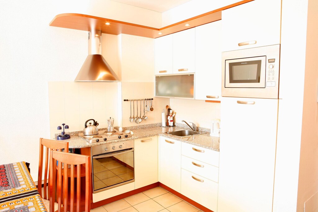 Rengørings- og komfortabel lejlighed med alt, hvad du behøver for et behageligt ophold, Beliggenheden er meget praktisk, hvilket gør det let at udforske det omkringliggende område, Den eneste ulempe var vejret, men det tog ikke noget fra vores oplevelse, Samlet set, god værdi for en familievenlig ferie