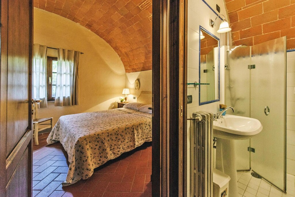 Maison de campagne tranquille du XVIIIe siècle située sur les collines entre Pise et Florence. Cette ancienne ferme est entourée d'un parc de 5 hectares avec des oliveraies et des bois. Idéal pour des vacances tranquilles et détendues, aussi bien pour les familles que pour les couples. Le bel espace piscine, le court de tennis et le restaurant avec des produits faits maison complètent l'offre. Bon point de départ pour explorer des villes culturelles telles que Florence, Pise, Volterra, Sienne et San Gimignano. Les nombreux itinéraires de trekking et de cyclisme vous offrent la possibilité d'explorer vous-même la belle Toscane et vous avez également la possibilité de participer à une dégustation. Si vous souhaitez mieux connaître la Toscane d'un point de vue culinaire, vous pouvez réserver un cours de cuisine dans la résidence (sur demande, moyennant un supplément). Proposé dans votre résidence de vacances : 2 bâtiments, 19 unités résidentielles, réception, petit-déjeuner chambre, restaurant, bar, jardin, terrasse communautaire, places de parking Payant : service de roll, machine à laver Activités : piscine extérieure communautaire, 312 m² (ouverte de début mai à fin septembre, selon la météo), douche extérieure, transats . tennis de table. Payant : location de vélos, tennis Mobilité : Ne convient pas aux personnes à mobilité réduite