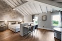 L'extérieur est caractérisé par la chapelle médiévale, qui a été transformée en un élégant espace de vie après restauration. Les chambres climatisées offrent des vues magiques sur la campagne. Le jardin entièrement clos garantit sécurité et intimité et la piscine à débordement avec bain à bulles est la cerise sur le gâteau. Des fruits, des légumes de saison et des jus frais, provenant de la ferme sur place, sont disponibles à l'arrivée, ainsi que des vins locaux, de l'eau et une boisson de bienvenue. Le prix comprend un petit-déjeuner buffet au centre de villégiature voisin, le ménage quotidien, des serviettes de piscine fraîches tous les jours, 3 heures d'accès gratuit au spa (sur réservation) et un accès illimité au terrain de golf.