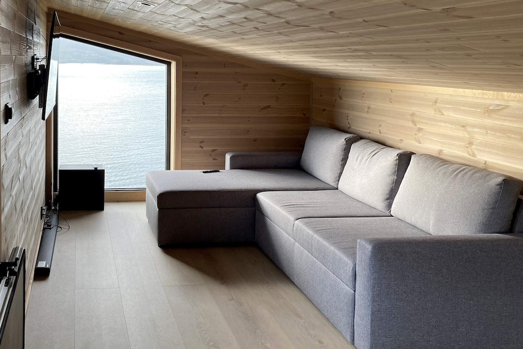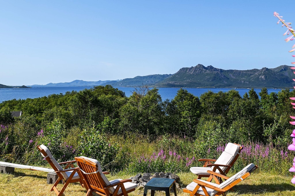 Comfortable and modern holiday house by Eidsfjorden. From the cabin and sauna, there are a magnificent view of the beautiful fjord landscape with the sunset and the midnight sun. Great starting point for day trips around Vesterålen and Lofoten by car. The cabin is tastefully furnished with light wood in the walls and ceiling. The living room and kitchen have large windows facing the fjord, which make the rooms bright and pleasant. Above the sofa group in the living room there is a mezzanine with 2 chairs and a table. From here there is a fantastic view of the fjord, the sunset, and the midnight sun. 2 bedrooms, one with a double bed and one with a family bunk with an extra-wide bunk bed downstairs and a single upstairs. Above the bedrooms is a loft with a double sofa bed and 2 mattresses. In the living room there is a TV with Norwegian and international channels and a wood-burning stove that provides pleasant warmth even on cold autumn and winter days. Free internet. The plot is sunny and child friendly. From the terrace and the cabin there is a magnificent view of the fjord and the beautiful mountain landscape. The mountain Reka with its distinctive rock formation can be seen on the other side of the fjord to the north. Sauna for 6 people is in a separate building next to the cabin. Here you can sit and enjoy the view of the fjord and the sunset through the large windows. On fine evenings with the midnight sun casting its red rays over the landscape, this is an experience you are unlikely to forget. On the terrace there is outdoor furniture and a barbecue. The landscape around the fjord invites you to wonderful walks and from the mountaintops there is a great view. In the fjord there is good sea fishing and fishing can be done with a pole. Nice starting point for day trips by car around Vesterålen, to the small fishing villages on the west side of Langøya. On the west side of Andøya is a beautiful coastal landscape with idyllic sandy beaches and dramatic mountain scenery, shaped by the ocean over millennia. At Andenes, whale watching is by boat out to sea. Seeing the big whales up close is an exciting experience for the whole family. Day trips can also be made by car to Lofoten in the south with a car ferry from Melbu to Fiskebøl. 25 km to the coastal towns of Sortland and Stokmarknes with shops and restaurants. Parking space on the plot.