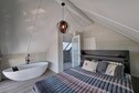 Lit double (boxspring), Baignoire, Douche (douche à l'italienne), Lavabo