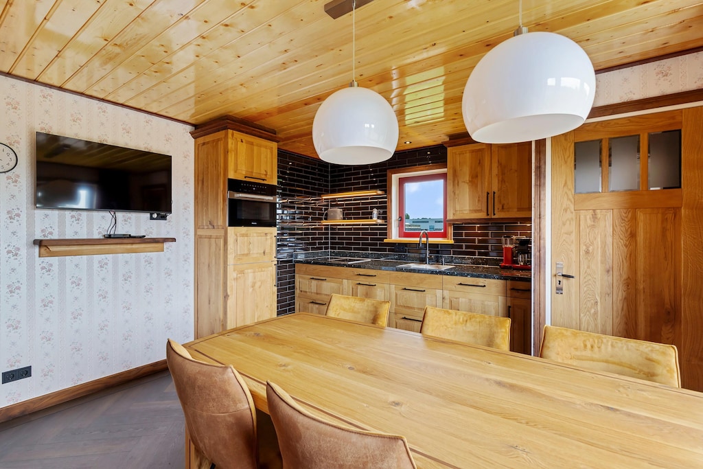 Cette maison de vacances magnifiquement conçue est située le long d'un canal paisible à Jistrum, en Frise. Conçue pour le confort et le style, elle dispose de deux chambres spacieuses avec des lits à sommiers frisons de haute qualité et des téléviseurs. La grande cuisine équipée d'appareils électroménagers modernes, dont une cafetière de luxe, est idéale pour se retrouver en famille ou entre amis. À l'extérieur, une terrasse couverte offre une vue relaxante sur le canal et constitue un endroit idéal pour un barbecue. La propriété comprend également un local à vélos sécurisé avec bornes de recharge, un parking avec bornes de recharge pour voitures électriques et une aire de jeux sécurisée pour les enfants.