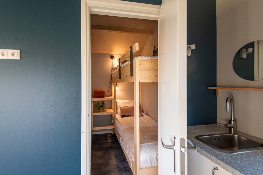 Ces jolis lodges sont situés les uns à côté des autres sur une bande de terrain, juste au bord des prairies. Chaque logement peut accueillir quatre personnes et dispose de deux chambres à coucher (dont une avec un lit superposé), d'une belle salle de bain et d'une cuisine ouverte avec un coin salon. À l'avant de cette maison de vacances se trouve une belle véranda meublée. Vous pouvez y jouir d'une vue s'étendant jusqu'à l'horizon et c'est donc l'endroit idéal pour commencer et terminer la journée.