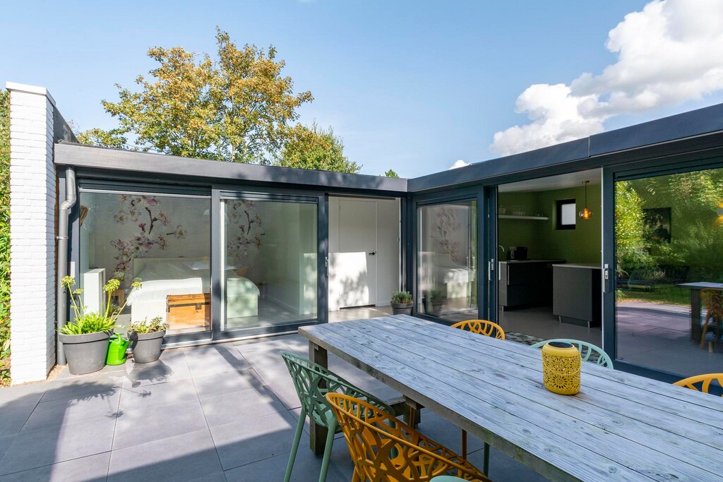 Le jardin est verdoyant et dispose d'une grande terrasse avec de jolis meubles de jardin et de confortables chaises longues. Il y a de la place pour ranger vos vélos dans le hangar. Il y a beaucoup d'intimité sur la grande terrasse ensoleillée et dans le jardin grâce à la végétation variée.
