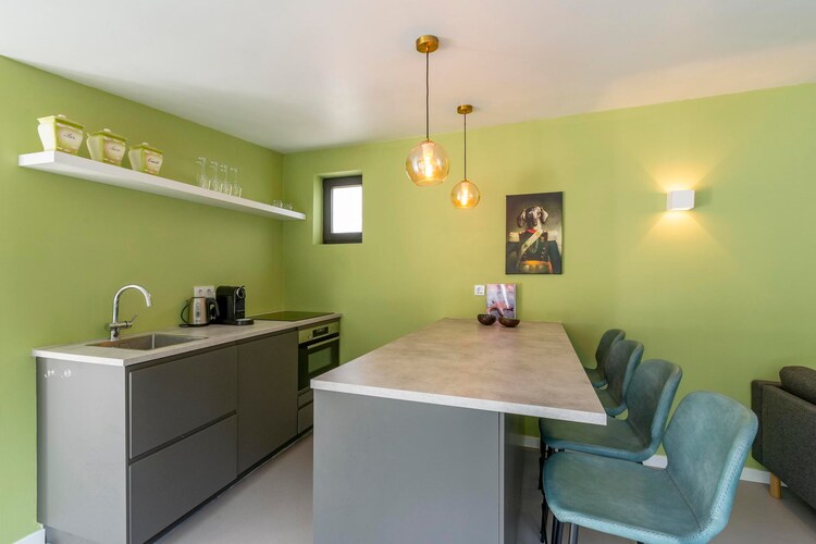 La cuisine ouverte dispose de divers appareils de cuisine contemporains et d'un bar à manger pouvant accueillir 4 personnes. La grande chambre (ouverte) avec un lit double spacieux est décorée de façon romantique et offre également une belle vue sur le jardin grâce aux grandes portes coulissantes. La deuxième chambre dispose d'un lit superposé. Il y a une belle salle de bain avec toilettes, lavabo et belle douche à effet pluie ! La maison est chauffée par un chauffage au sol.