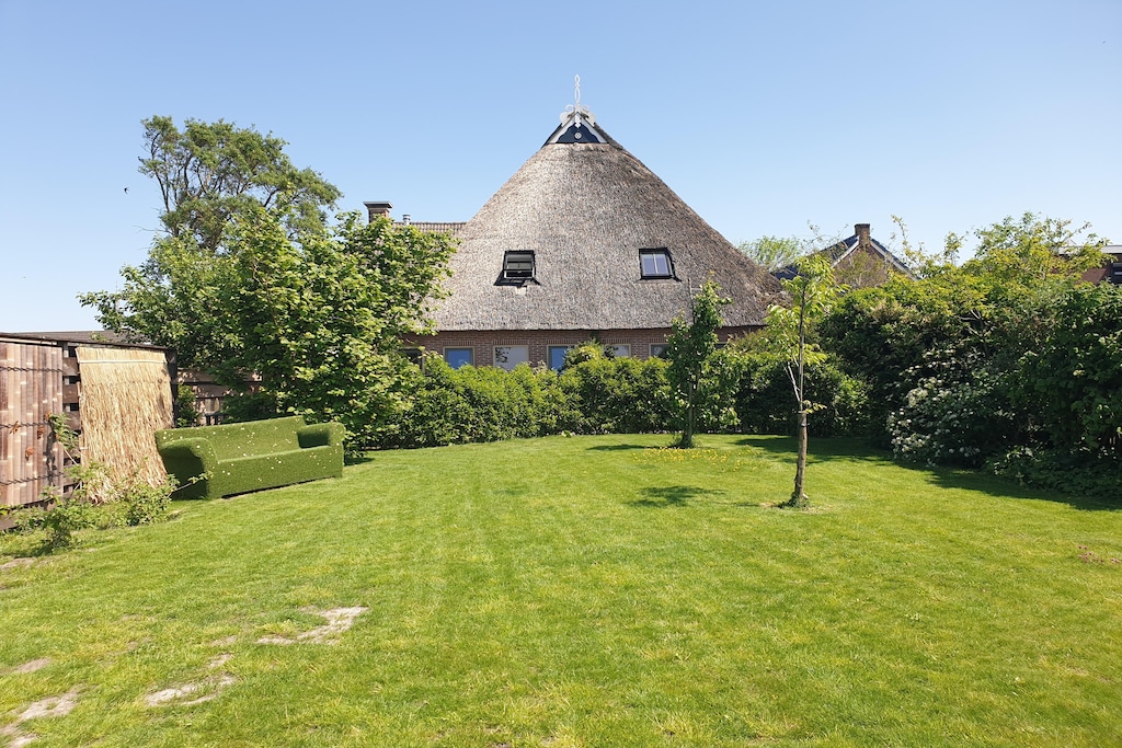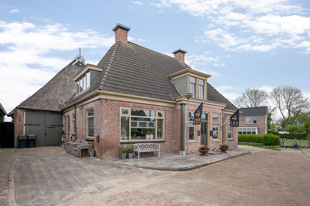 L'Inn Friesland à Ternaard est un bel hébergement de groupe spacieux et moderne situé dans le sympathique village de Ternaard, en Frise. Cette ancienne auberge unique au toit de chaume est située sur un site classé au patrimoine mondial de l'UNESCO et offre toutes les commodités pour des vacances reposantes en famille, entre amis, mais aussi pour les groupes avec chiens (propriétaires). Dotée de cinq chambres et de deux canapés-lits, l'auberge peut accueillir jusqu'à quatorze personnes. Chambres spacieuses et confortables