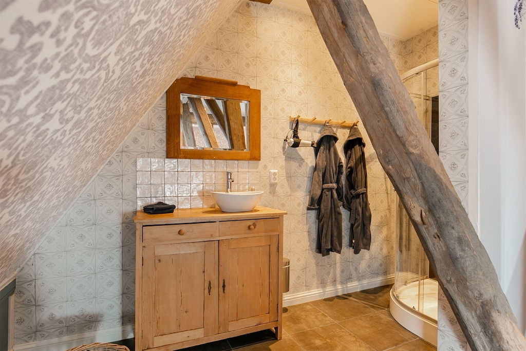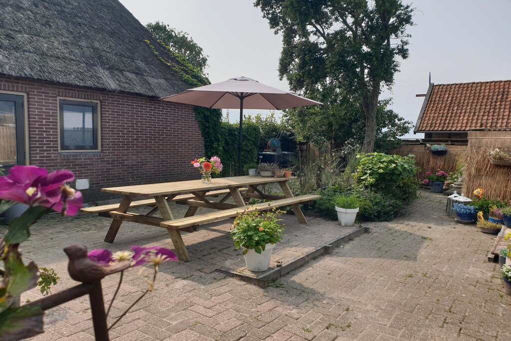 Des frais optionnels de services et utilités d'un montant de EUR 677,00 seront facturés avant votre arrivée. Les détails sont fournis ci-dessous.<br> Bienvenue à l'auberge Friesland, un hébergement de groupe magnifique et spacieux situé dans le charmant village de Ternaard, en Frise. Nichée sur un site classé au patrimoine mondial de l'UNESCO, cette auberge magnifiquement restaurée dispose d'un toit de chaume traditionnel et propose des équipements modernes pour une escapade relaxante en famille et entre amis, y compris les propriétaires de chiens. Avec six chambres décorées avec goût, l'auberge peut accueillir jusqu'à 17 personnes, avec deux chambres et une salle de bain attenante au rez-de-chaussée pour un accès facile. Chaque chambre est meublée de luxueux lits à sommier tapissier pour un confort optimal, et des canapés-lits de haute qualité dans les espaces communs offrent des couchages supplémentaires. Les familles apprécieront la mise à disposition de lits bébé et de chaises hautes sur demande. Les propriétaires de chiens trouveront l'auberge Friesland particulièrement accueillante, car elle dispose de quatre jardins clos sécurisés par des portails verrouillables, permettant un maximum de cinq chiens (avec des options pour plus sur demande). Que vous exploriez les environs pittoresques, profitiez de moments de qualité avec vos proches ou vous détendiez dans la tranquillité de la campagne, l'auberge Friesland est le point de départ idéal pour vos aventures. Réservez votre séjour dès aujourd'hui et créez des souvenirs inoubliables au cœur de la Frise ! <br><b> Forfait optionnel services & utilités </b><br><b> Un forfait optionnel de services et utilités d'un montant de EUR 677,00 </b> peut être sélectionné avant votre arrivée. Vous recevrez une communication séparée avec le lien de paiement si vous souhaitez l'ajouter.<br>Ce forfait garantit un séjour sans souci et couvre des services tels que le ménage final, la consommation d'utilités, l'assistance de service et la protection contre les petits dommages ou frais imprévus pendant votre séjour.<br>Les clients qui le préfèrent peuvent gérer ces services eux-mêmes, à condition que le logement soit rendu en bon état lors du départ.