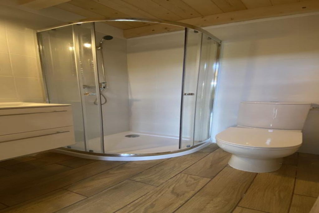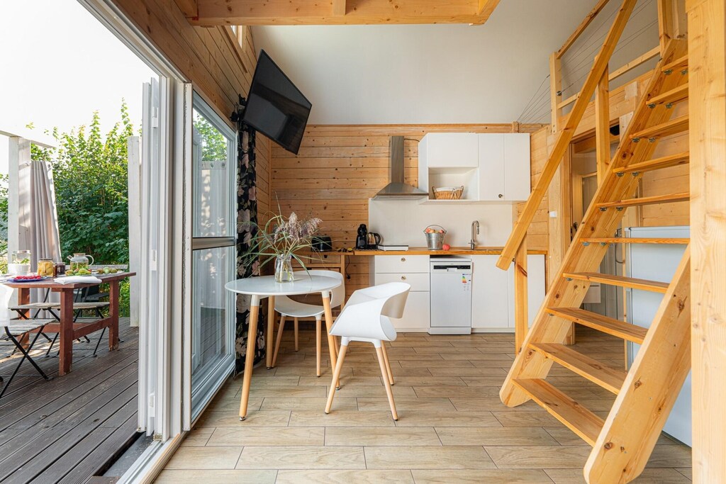 Maison de vacances en bois sur une propriété privée clôturée, à 30 m du bord d'un lac aux eaux cristallines. Au rez-de-chaussée il y a un séjour avec coin cuisine, une chambre avec un lit double et une salle de bain avec douche. En mezzanine se trouve une autre chambre (2 lits simples et TV). La vue depuis la mezzanine sur les magnifiques levers de soleil est imprenable. Vous disposerez d'une terrasse avec un salon de jardin, des transats et du matériel de barbecue.