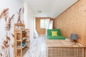 La maison de vacances en bois est située sur un terrain privé clôturé, à 30 m du bord d'un lac aux eaux cristallines. Au rez-de-chaussée il y a un séjour avec kitchenette et une salle de bain avec douche. Le séjour dispose d'une télévision, d'une cheminée (kit de démarrage à bois inclus), d'un canapé 2 places et d'une table avec chaises. Il y a 2 chambres séparées au premier étage. L'équipement comprend un lave-linge. La vue depuis la terrasse couverte sur les magnifiques levers de soleil est époustouflante. Sur la terrasse se trouvent un salon de jardin, des transats et du matériel de barbecue.