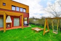 Une maison mitoyenne à deux étages, sur un terrain privé clôturé (environ 90 m²) avec balançoire, bac à sable, pelouse bien entretenue et parking pour une voiture. Au rez-de-chaussée il y a un salon relié à la cuisine. Le salon dispose d'une cheminée, d'un canapé-lit double, d'une table avec chaises et d'une télévision. Il y a aussi une salle de bain avec douche au rez-de-chaussée. Au premier étage, il y a 2 chambres séparées (chacune avec 2 lits doubles) et une deuxième salle de bain avec douche. Il y a un chauffage au gaz très efficace, qui peut être soutenu par une cheminée dans le salon, et la maison dispose d'une excellente isolation thermique, qui garantit une détente confortable à tout moment de l'année. La maison dispose d'une terrasse couverte avec salon de jardin et cheminée barbecue.