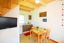 Maisons mitoyennes confortables sur deux étages conçues pour accueillir un maximum de 4 personnes (+ éventuellement 1 personne sur un lit d'appoint). Au rez-de-chaussée se trouve un salon spacieux relié à la cuisine. Le séjour dispose d'un canapé 2 places, d'une table et d'une télévision. Il y a aussi une salle de bain avec douche au rez-de-chaussée. Au premier étage on retrouve 2 chambres séparées (dont 1 transitionnelle). Chaque maison dispose d'une terrasse couverte avec un salon de jardin et des transats. Un barbecue est disponible. Chauffage électrique. Internet sans fil est disponible.