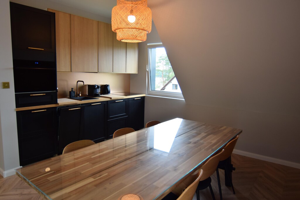 Évadez-vous dans cet appartement de vacances spacieux, moderne et élégant, niché au troisième étage d'une paisible résidence au bord du lac. Conçu pour le confort et la détente, ce havre de paix magnifiquement meublé allie à la perfection commodité et charme. Accédez à votre terrasse privée sur le toit et admirez la vue panoramique sur le lac Raduńskie, l'un des plus grands et des plus pittoresques lacs du cœur de la Suisse cachoube.