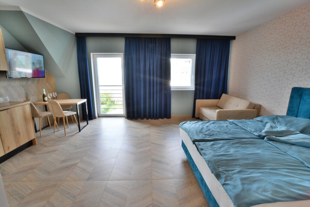 Le confortable studio de vacances est situé au 3ème étage. Il peut accueillir 3 personnes. L'avantage incontestable de cet hébergement est la vue imprenable et directe sur la mer. L'appartement se compose d'un salon spacieux avec un lit double, un canapé large et confortable, une table et une télévision. Il y a aussi une kitchenette et une salle de bains avec douche. Chauffage central. Internet sans fil est disponible. Il y a un parking gratuit à l'appartement.