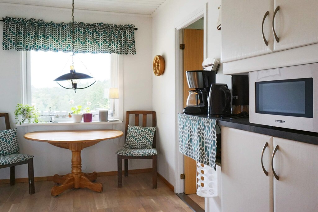 Welcome to this sunny and idyllically located cottage with a large balcony, annex building and lawn for playing and games. Here you live very peacefully and comfortably with nature, animals and birdsong. Around the corner of the cabin, nature is waiting for you who want to walk along roads and in a forest environment, pick berries or mushrooms and maybe meet some of the forest's animals. 15 minutes' drive away is the sea, salty baths and the famous fishing spot Fjällbacka, along the coast you can also reach other nice excursion destinations and bathing spots in Norra Bohuslän. Just as quickly you reach the mile-wide Bullaresjöarna, lakes known for their many nice bathing spots and good fishing opportunities (fishing license required). The cottage entrance is reached via a small staircase and further into a large welcoming hall. From the hall you enter the kitchen with stove, microwave, fridge/freezer, coffee maker and dishwasher. Large living room with dining room furniture, comfortable sofa and TV. Please note that there is a fire ban in the stove, it must not be used. Two bedrooms, one with two single beds and one with bunk beds, bathroom with shower. By the entrance stairs, a staircase leads down to the cottage's basement, where there is a washing machine and tumble dryer, as well as another bathroom with a shower. Next to the cabin is a nice little annex with a small hall and a bedroom with two single beds. On the newly built and well-sized balcony there is a grill and outdoor furniture, part of the balcony area is under cover, a nice place where you can enjoy nature, birdsong and maybe pass a moose while you grill and eat a good piece of food. The cottage also has a fiber connection. Here you have the best from the west coast, crab and mackerel fishing, salty swimming, boating and also Fjällbacka's summer bustle with shops, restaurants and cafes! The archipelago off Fjällbacka is considered by many to be the most beautiful in Sweden. If you prefer swimming, there are both child-friendly beaches, for example at beautiful Sälvik, or rock pools and jumping towers at Badholmen, located in the harbor. There is also a nice disabled-friendly bath at Badberget's bathing area. For those who want to go out to sea, there are several opportunities to take a boat trip with one of the archipelago's boats. Fjällbacka has an incredibly beautiful archipelago with many both small and larger islands. Via the Tourist Office, you can rent both a kayak and a boat with a motor to explore the sea on your own. There are also several nice nature reserves and coastal paths to hike in, don't forget the camera, there is always a chance to see something that is worth a photo and that can become a memory for life. In the immediate area there are also several other pleasant fishing and boating communities well worth a visit. Welcome to the best of Norra Bohuslän!