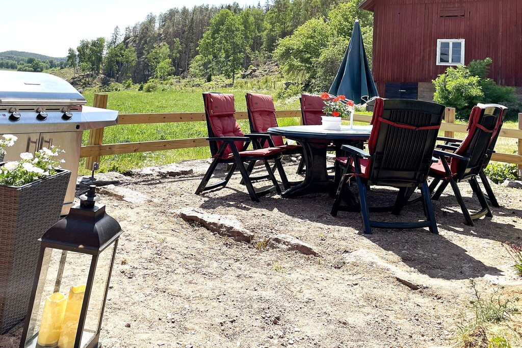 Welcome to a cozy cottage in a scenic environment where you can enjoy the peace and quiet. Here you can discover the best of nature in an idyllic, rural setting with a magical view of the fields. You are also close to a refreshing swim. You live in peace and quiet with privacy, the owners live in the neighboring house but with a secluded hedge. Your four-legged friends are welcome but your animals must be leashed outdoors. There are two kayaks for rent on site if you want to explore the lake. Life jackets are provided. You have a nice patio with outdoor furniture, view and a gas grill. The cottage has two floors with all the amenities you need on your vacation. An open kitchen with dining area and a small dishwasher. In the small living room there are comfortable sofas to lean back in and enjoy the magical view. There are 7 beds in the house. There are three nice bedrooms with double beds and a smaller bedroom with a curtain where there is a single bed. For the little ones there is a pull-out cot or travel cot. Completely renovated bathroom with shower, sink and toilet. Charger for electric car available for a fee. In the summer there is a large trampoline for the children. There are also toys and a whole shelf of games, which is perfect for leisurely summer evenings. At the entrance to the parking, the chickens are walking around fenced in the yard. There are beautiful cycle paths and hiking trails here. There are bicycles to borrow from the owners, four children's bicycles in different sizes for the little ones and two adult bicycles. Helmets are also available. There are several swimming opportunities, visit Hycklingebadet 3 kilometers away, which offers a sandy beach, jetty and diving tower. Åsunden is 1.5 kilometers from the cottage. Why not try your luck fishing in the beautiful lake areas, in Östergötland there are many available fishing spots for those who want to fish on their own. The fishing areas are managed and maintained by local organizations and to be able to fish you must buy a fishing license for the local fishing area. In Djursdala Musteri you can eat a good meal and buy good apple juice. If you are looking for experiences, fine restaurants, attractions and shopping, Västervik is an hour away by car. Enjoy a trip on the archipelago boat, visit old alleys in the city's beautiful surroundings. Other recommended destinations or day trips are Astrid Lindgren's World in Vimmerby, Loftahammar and many local experiences. Welcome to Östergötland up close.