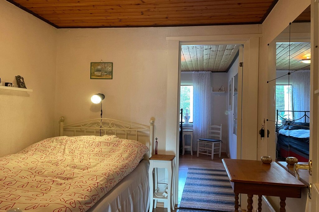 Welcome to a nice red cottage with white knots located near two lovely lakes. Vättern with its crystal clear water and Kyrksjön which is a smaller lake, only 5 minutes by car from your accommodation. The cottage is in a rural idyll with horses grazing in the pasture outside in the summer. From the cottage, you are close to the Göta canal and its locks and beautiful Tiveden with its magnificent nature, which means that there are plenty of day trips. The accommodation has a large balcony and a glazed conservatory. You look out over the large garden and the country road. You are welcomed into an open-plan family room and kitchen. There is a small dining table here for the first cup of coffee of the day. The living room has two comfortable sofas in front of the fireplace that crackles well. To the left is a dining room with table and chairs for 6 people. Next to the kitchen is the bathroom with shower/WC and also a washing machine. Adjacent is the house's larger bedroom with a double bed 160 cm wide. Next to it is the second bedroom/alcove with a bed of 120 cm and inside the other with a bed of 140 cm. A total of 4 -5 people depending on how the beds are distributed. The house has a separate apartment with its own entrance from the back of the house, where another guest may stay in rare cases. The house is suitable for families with children who want to be close to beautiful nature, several nice swimming spots and the tranquility of the countryside. Karlsborg Fortress offers coffee, ice cream, excitement and is worth a visit. A charming accommodation for those who want to enjoy a nice holiday in a beautiful place. Welcome!