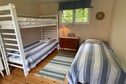 Cozy cottage with guest house at a bathrobe's distance from the sea in the Blekinge archipelago. Here you can enjoy the tranquility of nature and all the sights, shopping and events of the military city of Karlskrona just a short drive away. In the entrance to the cottage via the patio you come directly into the kitchen, which provides the opportunity for comfortable self-catering. In the adjoining room, there is dining room furniture in front of a fireplace that increases the cozy factor and provides pleasant warmth. Further into the house, there is also a sofa group with a TV that has the basic selection of Swedish channels. From this room there is a patio door to the patio with plank flooring. Inside the living room is a bedroom with a double bed and a shower room with a sink. There are two more bedrooms in the guest house on the property. One with a double bed, the other with a bunk bed and a single bed. Between these bedrooms is a toilet with a sink. Since the main building is built at an angle, the terrace is well protected with opportunities for pleasant meals and socializing. Outdoor furniture and barbecue are available on the patio. Large lawn between the houses for play and activities or for relaxing holiday lazy days in the sun. The world heritage city of Karlskrona, which is located in the middle of the archipelago, has a rich range of history and activities such as the Marine Museum with a submarine to look inside, along with many other exciting things for both young and old. Shopping and restaurant life are mixed with beautiful, calming seas all around. Boat trips run daily in the archipelago from various ports to several islands to discover. A visit to Barnensgård with its water and play area will be a holiday memory for the whole family. Here you can also pet the farm's animals. Several music festivals such as Skärgårdsfesten and Hasslö festival are arranged with popular artists in the area during the summer months for those interested in music. The bathing areas are also close by with both sand and rocks to cool off from. Welcome to beautiful Blekinge, Sweden's garden!