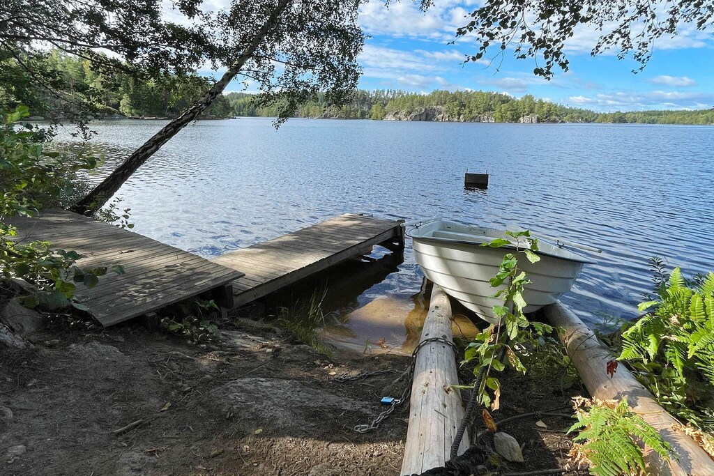Here you live in a beautiful location with a view of the beautiful Lake Älgsjön just 20 km outside Kisa. The cottage has a new kitchen that is open plan with the family room. From both the kitchen and the dining area you have a nice view of the lake and if you are a bit frozen, you can light a fire in the fireplace. The bathroom is newly renovated and has a washing machine. In one bedroom there is a double bed with an exit to the back and in the other there are two single beds. On the covered terrace you can sit and relax with a cup of coffee looking out over the calm lake. Next to the house you will find the guest cabin which has 2 single beds. The guest cabin has no key, it is always open. Just below the house you will find the lake (small gravel road lies between) where you can swim or take a trip with the rowing boat for free fishing in the lake (no nets or boat motors may be used). If you feel like grilling in the evening, there is access to a grill with an outdoor group. In the surroundings there are several nice lakes. There is something to do for everyone when you plan your excursion destinations both in the nearby area or if you go into the city of Linköping 55 km away. There you can visit the air force museum, Old Linköping in the city quarter Valla, good shopping in the city and good food. For the cultural, one likes to visit the cathedral and the castle at Borggården. 10 kilometers northwest of Linköping is the lock area known as Bergs slussar Göta Kanal's largest lock staircase. You come here to see boats closing the locks, eat good ice cream, rent a bike or take a cooling bath. 18 kilometers away is the Trollegater Nature Reserve, a well-visited place suitable for everyone in the family. Trollegater is one of Sweden's largest ancient rock caves. In the cave there is a system of passages that are close to a hundred meters long. The cave is located in southern Östergötland, where the number of ancient rock caves is more than anywhere else in the Nordic region. Adventure and excitement await those who want to explore Trollegater. It is 55 km to Vimmerby, where you can visit the fine town and Astrid Lindgren's world. Just before Vimmerby you will find Vimmerby adventure where there are good opportunities to experience play and exciting adventures. In total, there are 83 obstacles in the courses, which are located both in the treetops and closer to the ground. Or you can go to the Virum elk park 74 km, where you can go along on a trip out into the elk park and pet them. Welcome to a nice cottage with a nice lakeside location.
