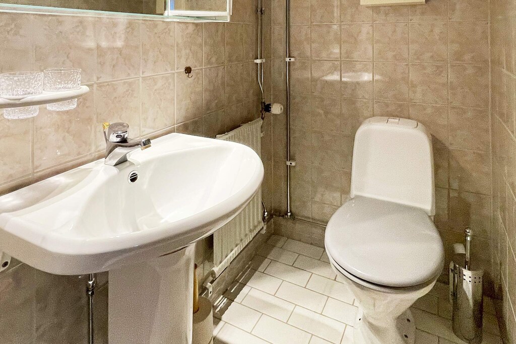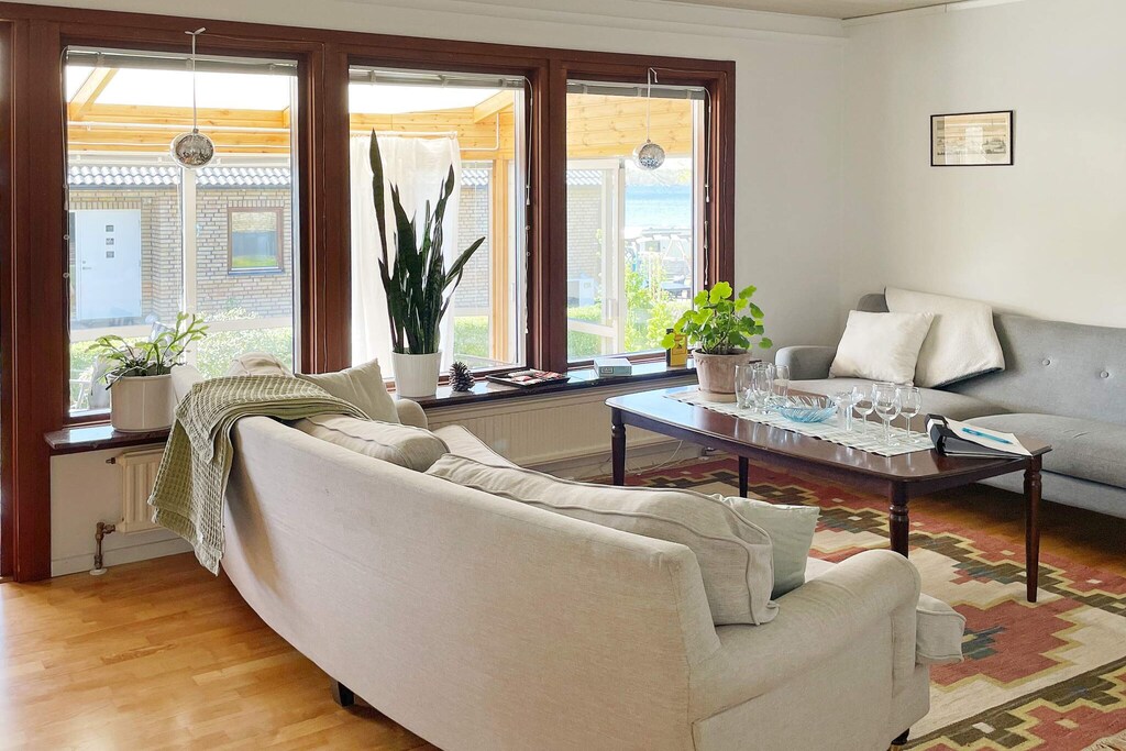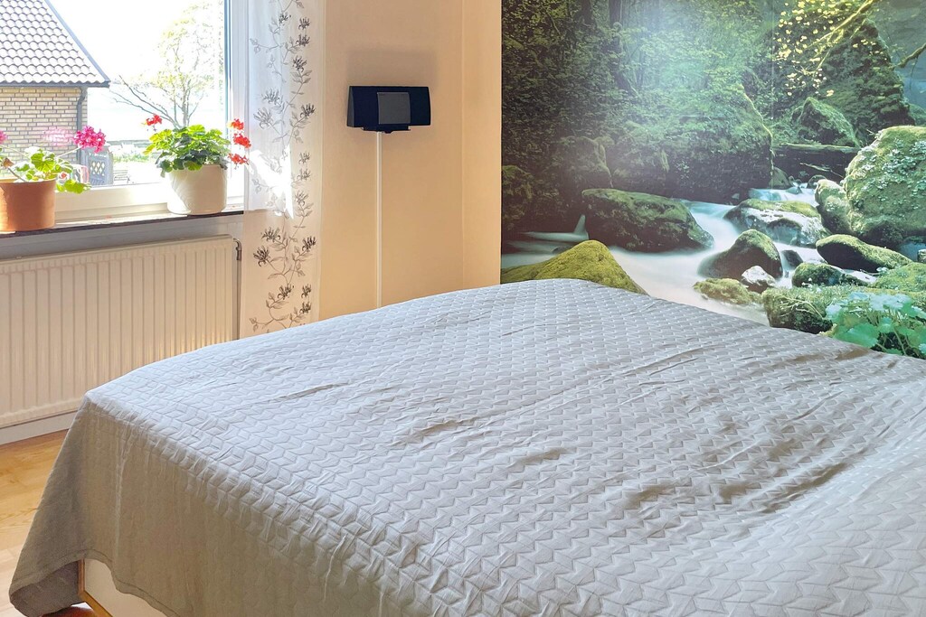 Welcome to create holiday memories in this family-friendly, fresh house in a quiet residential area with a fantastic sea view. From here, it is close to swimming, playground and Karlskrona city with the archipelago traffic's daily trips. The house's entrance floor has an open floor plan between the kitchen and living room. All possibilities for cooking are available in the fully equipped kitchen with large counter surfaces. Dining area with space for shared meals, piano for the connoisseur of music and sofa group in front of the stove for the coziest moments. A patio door leads out to the glazed conservatory at the front of the house with a beautiful sea view. In the other half of the house there is a bedroom with a double bed and one with a pull-out double bed in the study which has access to two screens on the desk for those who want to use for work or play. Bathroom with shower located between the bedrooms in the hall and here also a staircase to the basement floor. Below the stairs a washroom with a glass wall in a large shower area. In the hall entrance to separate toilet with sink. At the far end with a basement window that provides plenty of light in the bedroom with a double bed and wardrobe storage. There is also an extra, removable bed for use anywhere in the house. The large fenced garden with outdoor furniture and barbecue on the lawn has room for lots of play and activities. A wood-fired hot tub can be rented at an extra cost during September - May and is paid on site to the owner. There are also a lot of cultivated vegetables and spices for the guests to use freely. Smaller boat for excursions or fishing at sea is also included in the weekly rent May - September and also with life jackets in different sizes. Sturkö, which is connected by a bridge, is one of the larger islands in the archipelago and has a grocery store, restaurant and bakery. There is much to discover here on foot or on a bicycle borrowed from the accommodation. By car, you can easily get to "Barnens gård", which is a water - and play area with the farm's animals to pet and cuddle with. The naval city of Karlskrona has a lot to see and experience, for example the Marine museum with a submarine to visit and very interesting history for both adults and children. Welcome to Blekinge's beautiful archipelago!